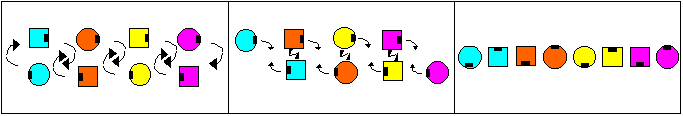 Der erste Tänzer der column Formation tanzt wie bei follow your neighbor seinen Teil = fold and roll. Die drei sich diagonal gegenüber stehenden Paare tanzen ebenfalls ihren Teil von follow your neighbor = exend and cast off 3/4. Die Figur endet in tidal waves. Merke: wie follow your neighbor, aber auch über die Mitte der Formation.