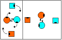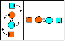 nur eine Vierteldrehung (90°) um ihre Handverbindung. Die ends gehen wie gewohnt auf dem äußeren Kreisbogen eine