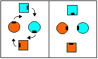 Wenn kein Partner vorhanden ist (bei diamond Formation), dreht man zur Mitte der eigenen Hälfte hin (in).