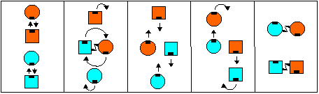 Alle beginnen mit pass thru. Die sich gegenüber stehenden neuen centers tanzen miteinander turn