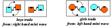 trade = tauschen, hier: die Plätze tauschen. Wir wenden diese Figur vorerst nur in mini waves, ocean waves und two faced lines an. | ||||||||||||||||||||||||||