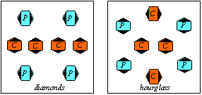 points < > centers Bei diamond und hourglass Formationen bezeichnet man jene Tänzer als centers ‘C’, die in der Mitte der Formation stehen. Die points ‘P’ stehen am Rand der Formation.